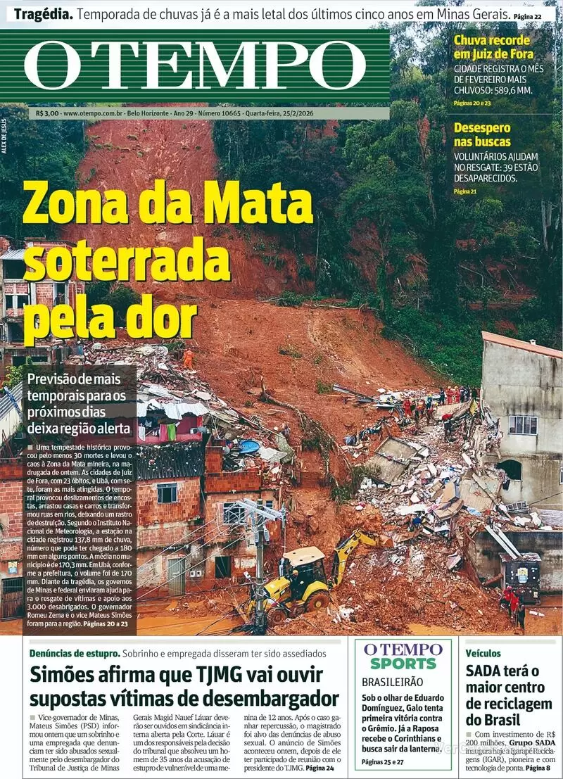 Buscas seguem na madrugada em Juiz de Fora e Ubá após temporais históricos que provocaram deslizamentos e destruição na Zona da Mata