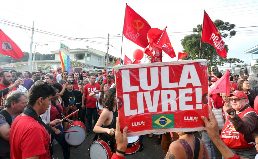 Manifestantes se reúnem em frente à PF e à Justiça Federal pra pedir a soltura de Lula