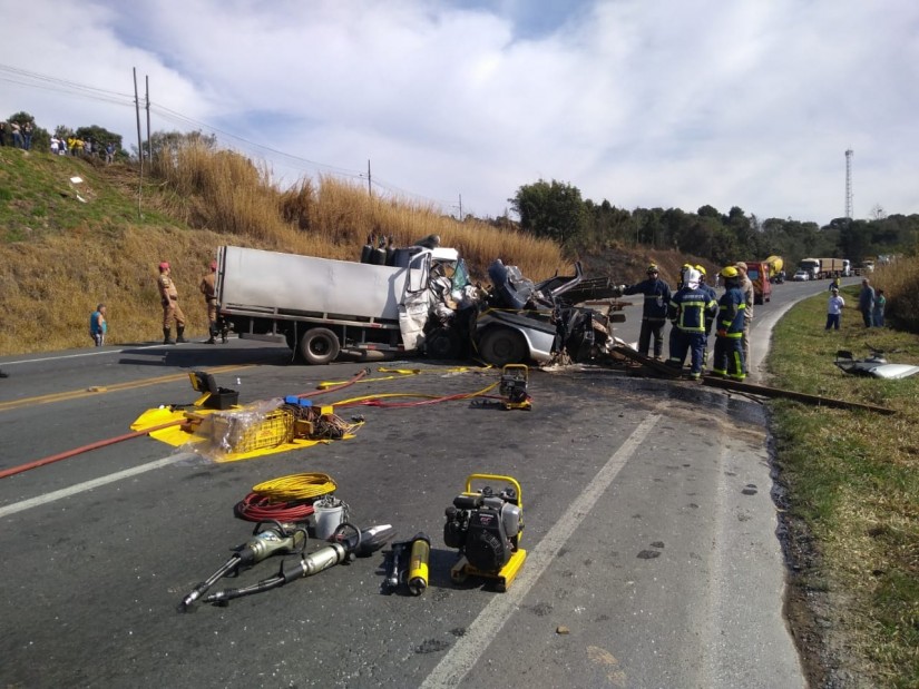 acidente no Contorno Norte (PR-418), na região de Santa Felicidade, em Curitiba, deixou duas pessoas mortas e outras duas gravemente feridas no início da tarde desta sexta-feira (26). Três veículos bateram na pista sentido Almirante Tamandaré, Região Metropolitana, por volta das 12h30, e uma das vítimas precisou ser retirada das ferragens pelos socorristas. As outras duas vítimas morreram na hora. O tráfego segue interditado no local, nos dois sentidos da pista. O acidente foi na altura do trevo de acesso para Almirante Tamandaré.
