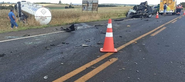 Segundo a PRF, motorista invadiu pista contrária e carro atingiu caminhão,