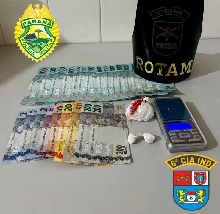 Durante a ação, foram apreendidos 15,5 gramas de cocaína, balança e quase R$1.900