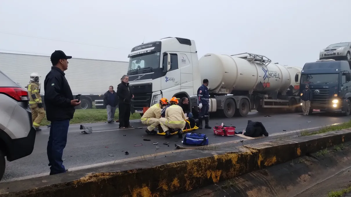Acidente foi registrado na manhã desta sexta-feira, por volta das 7h30; local estava com neblina intensa.