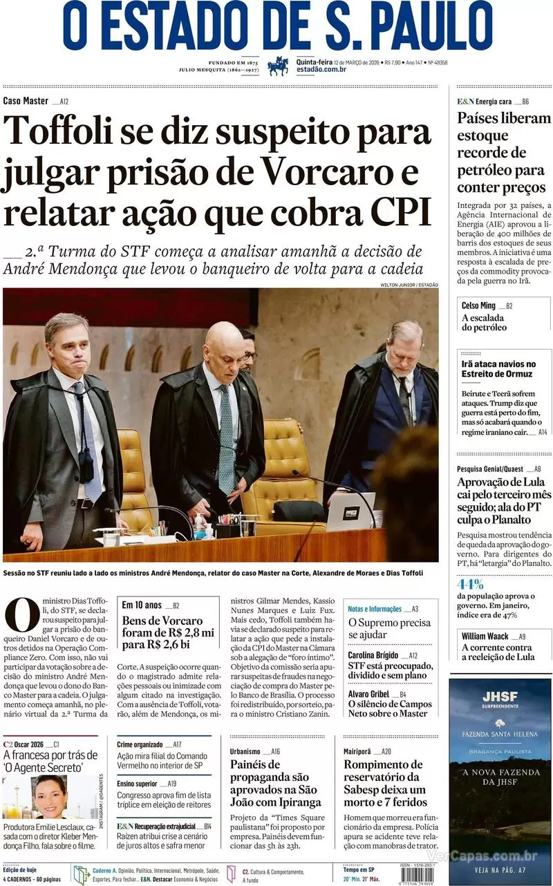 quinta-feira, 12 de março de 2026
